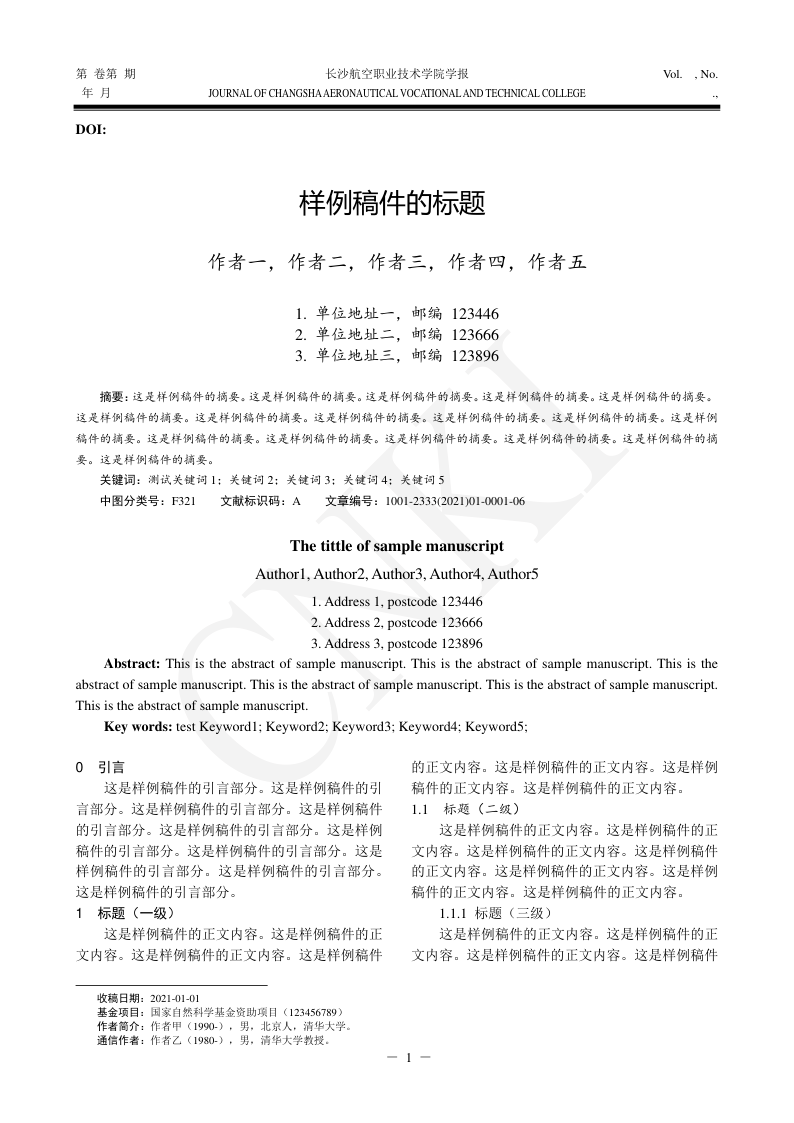 Journal of Changsha Aeronautical Vocational and Technical College