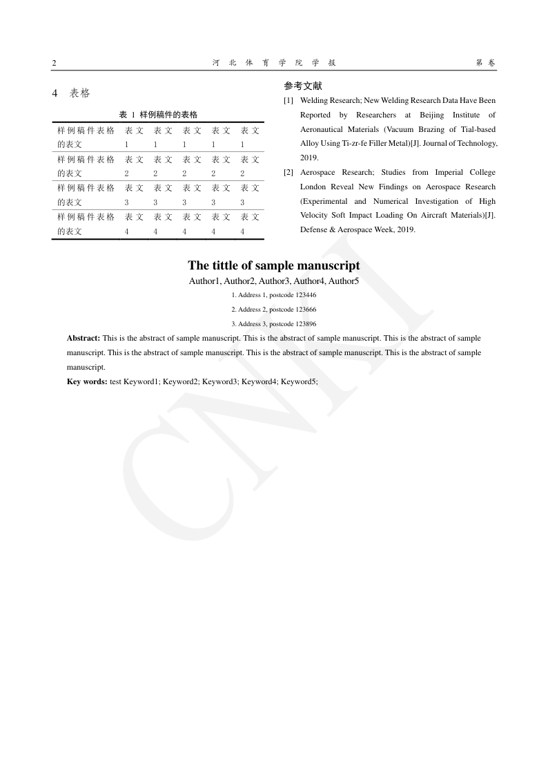 河北体育学院学报 JSTAMI扩展