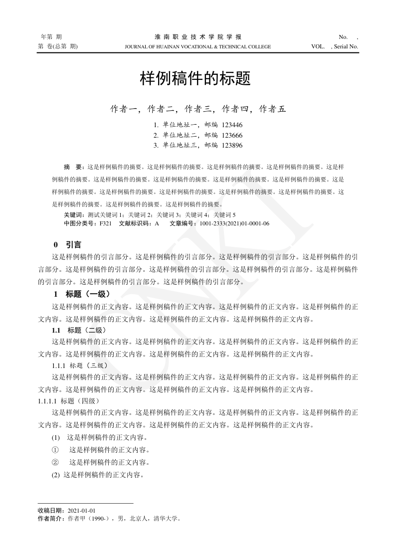 Journal of Huainan Vocational Technical College