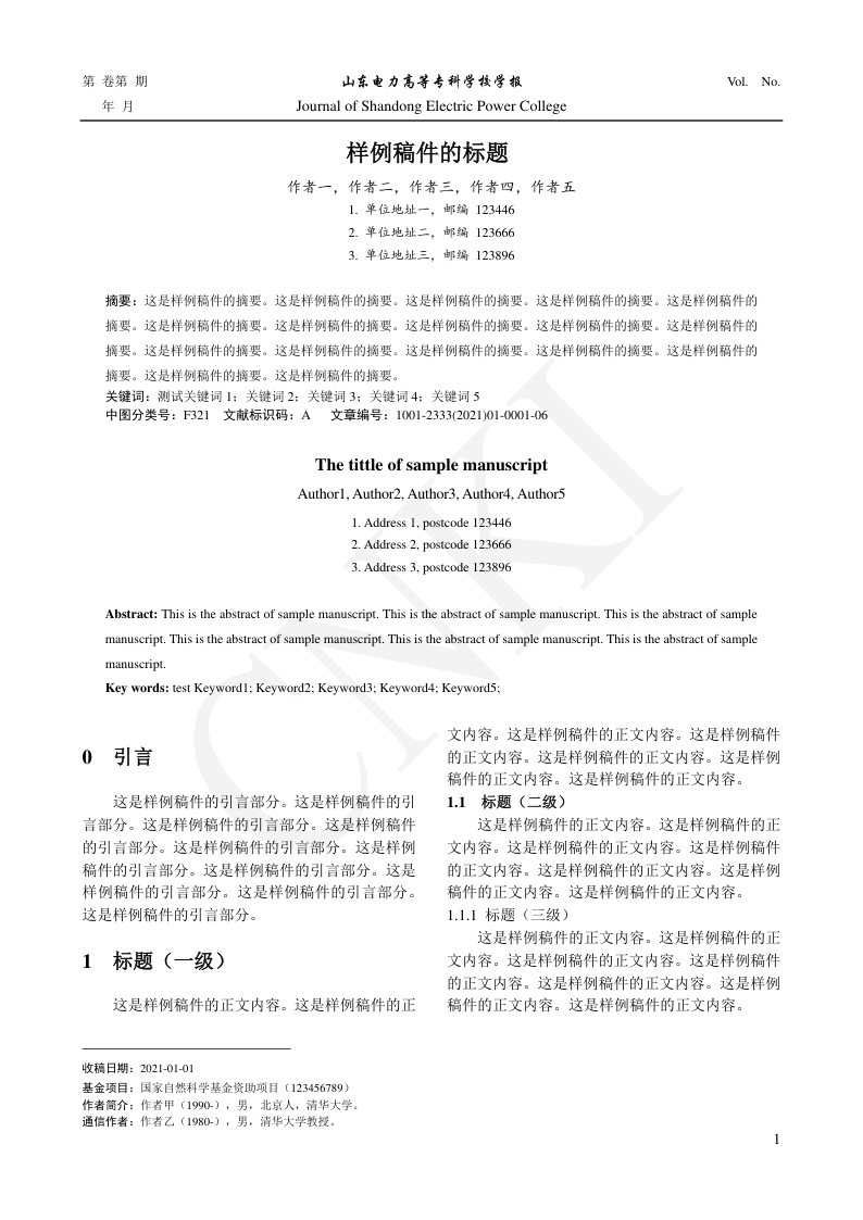 Journal of Shandong Electric Power College