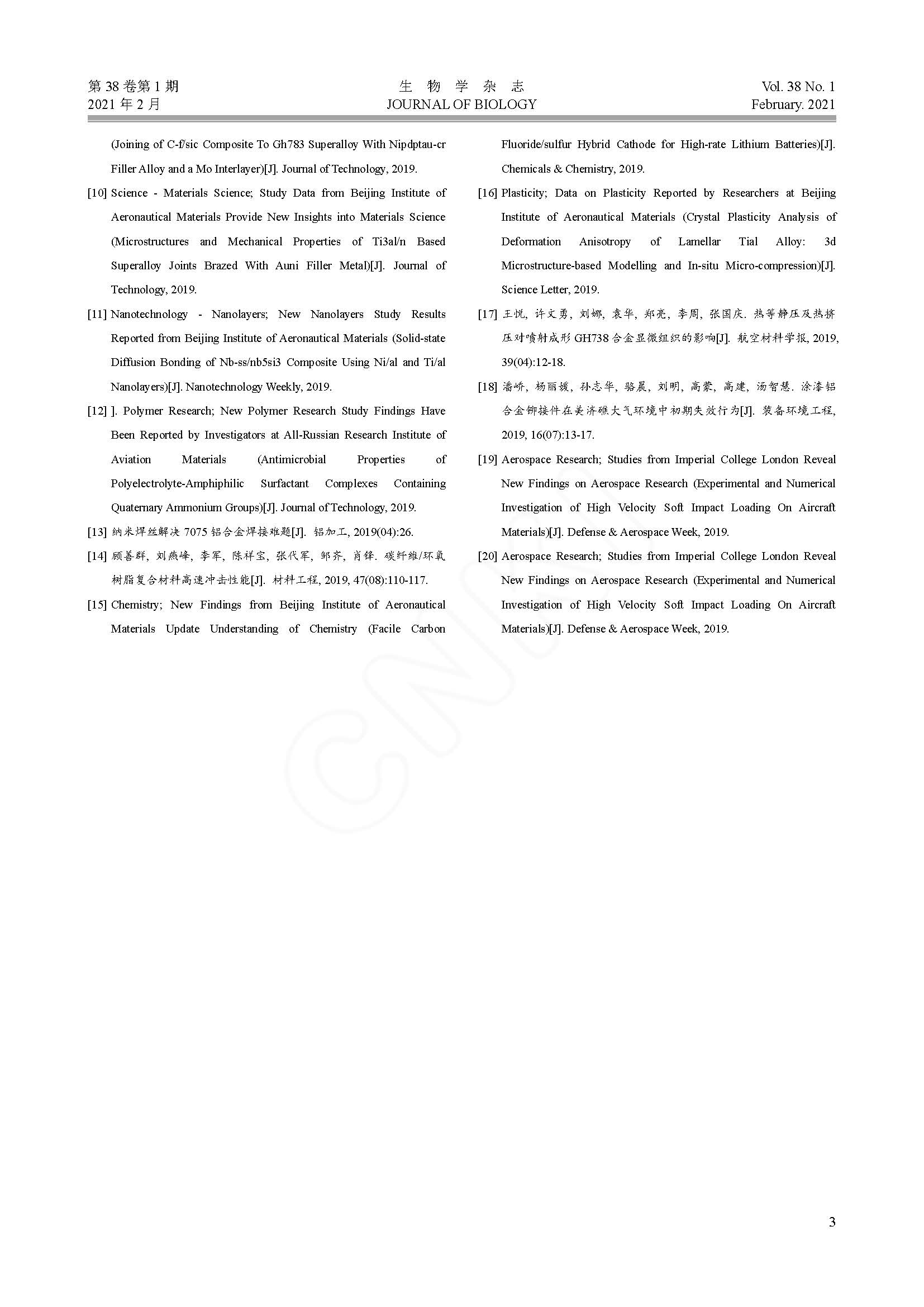 生物学杂志 CASJSTCSCDWJCI